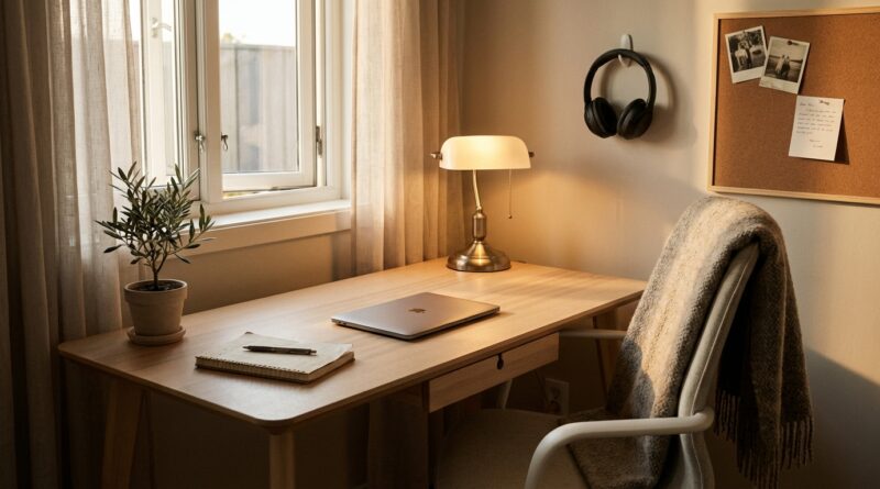 In a tiny apartment, use zones. A lamp that only turns on during work can create a mental border. In an office, headphones and one desktop organizer can cut a surprising amount of sensory drag. If your setup is temporary, focus on portable changes: lighting, sound, posture, and one clean visual area.